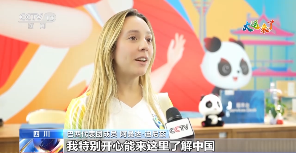 巴西代表團(tuán)成員 阿曼達(dá)·迪尼茲:中國(guó)真是個(gè)漂亮的國(guó)家,我特別開心能來(lái)這里了解中國(guó)、感受文化,認(rèn)識(shí)大家。這里的食物很美味,城市也很漂亮。成都讓我印象太深刻了。
