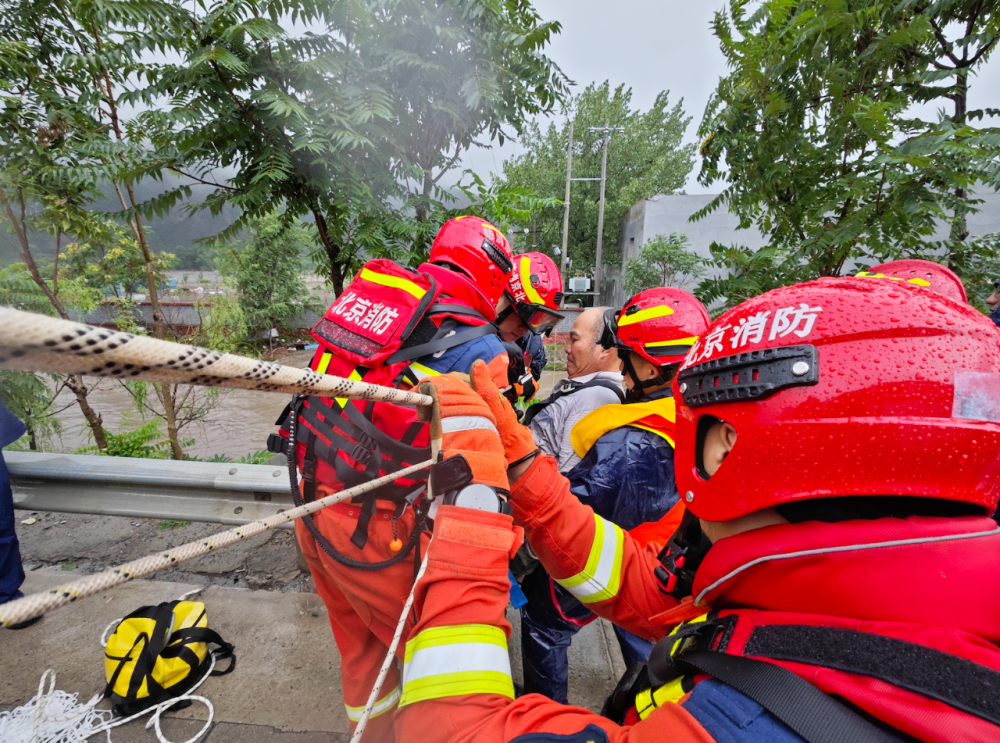 13時(shí)許,在房山區(qū)青龍湖鎮(zhèn)救援安置了少年軍校基地被困人員后,北京消防特勤支隊(duì)的救援人員又接到報(bào)警稱,在距離此處9公里外的漫水河水文站有人員被困,現(xiàn)場指揮員立刻分派力量前往現(xiàn)場進(jìn)行救援。