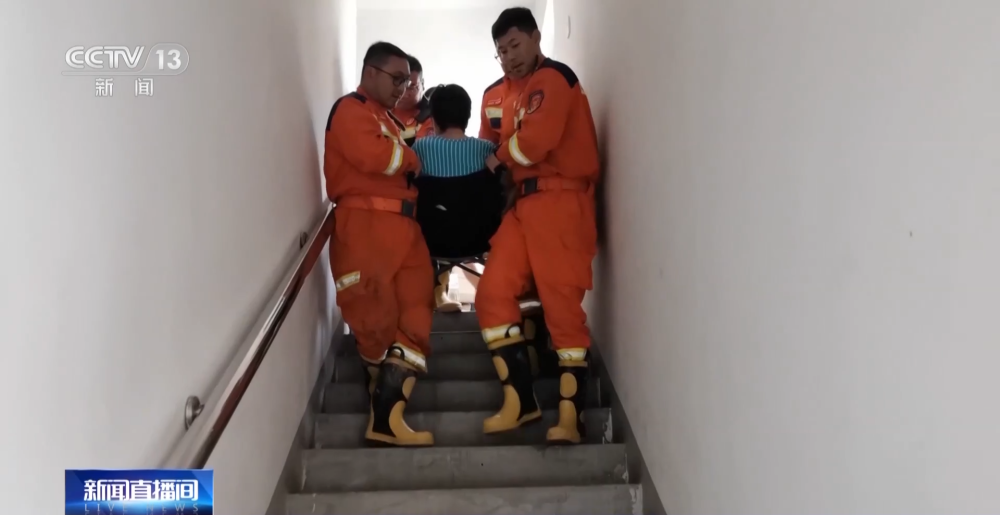 除了緊張的排澇作業(yè),救援隊(duì)注意到,由于斷水?dāng)嚯姅嗑W(wǎng),在這里居住的群眾也會遇到各種難題。6日上午,一名居民前來求助,21層82歲的老人姚希玉困在家中好幾天,有就醫(yī)需求。但沒有電梯,很難將老人運(yùn)送下來。救援隊(duì)決定,立刻走樓梯把老人運(yùn)下來。