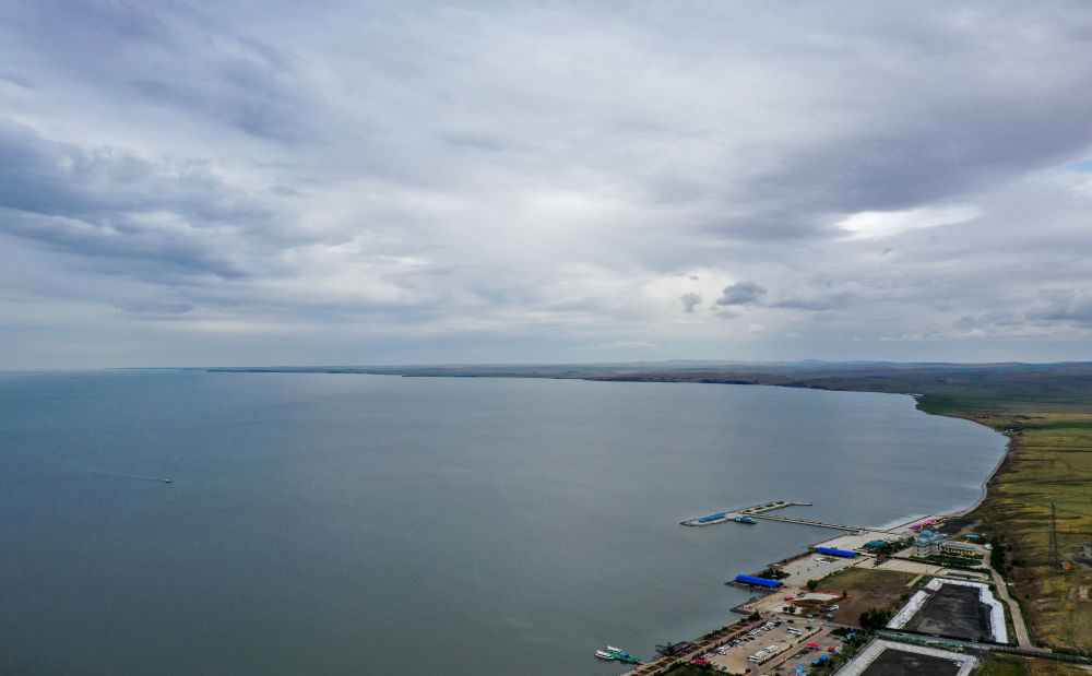 這是6月30日拍攝的呼倫湖(無(wú)人機(jī)照片)。新華社記者 連振 攝