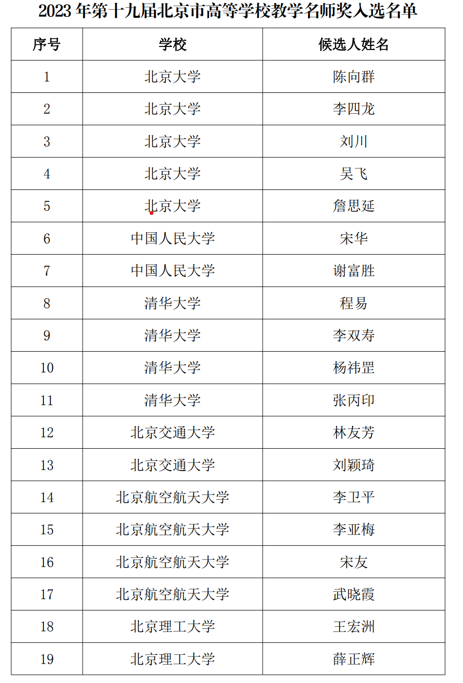 最新北京高校教學(xué)名師獎和青年教學(xué)名師獎公布