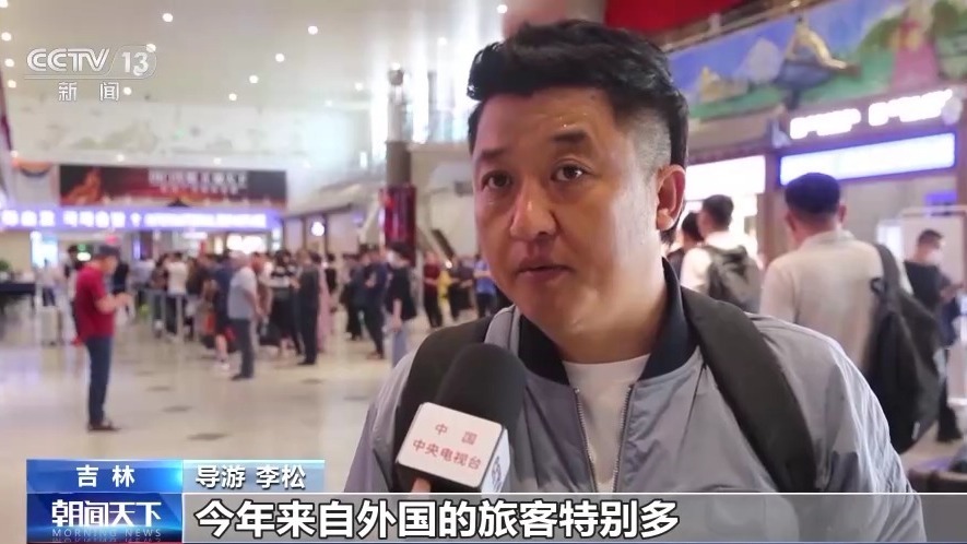 導(dǎo)游 李松:今年來自外國(guó)的旅客特別多,這個(gè)團(tuán)是這個(gè)月我?guī)У牡谖鍌€(gè)團(tuán)了。