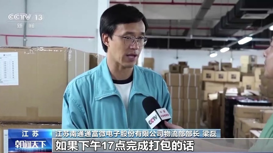 江蘇南通通富微電子股份有限公司物流部部長(zhǎng) 梁磊:我們當(dāng)天的出貨,如果17點(diǎn)完成打包的話,當(dāng)天晚上12點(diǎn)前,基本就能到達(dá)深圳。客戶的一些特急件,我們甚至凌晨就能派送到位。