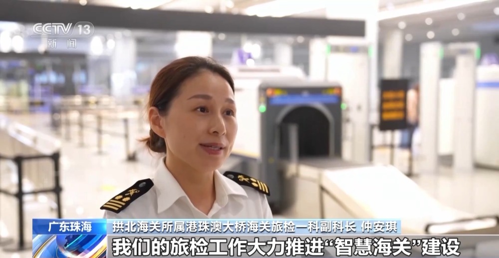 拱北海關(guān)所屬港珠澳大橋海關(guān)旅檢一科副科長 仲安琪:我們的旅檢工作大力推進(jìn)“智慧海關(guān)”建設(shè),在智能CT機、高低溫探測儀等智慧旅檢監(jiān)管設(shè)備的輔助下,我們監(jiān)管更加“耳聰目明”。此外,我們還通過信息互換、視頻共享、安保互助等手段加強與港澳海關(guān)、聯(lián)檢單位、大橋管理部門等單位的應(yīng)急處突合作,保障人流高峰時段旅客高效通關(guān)。