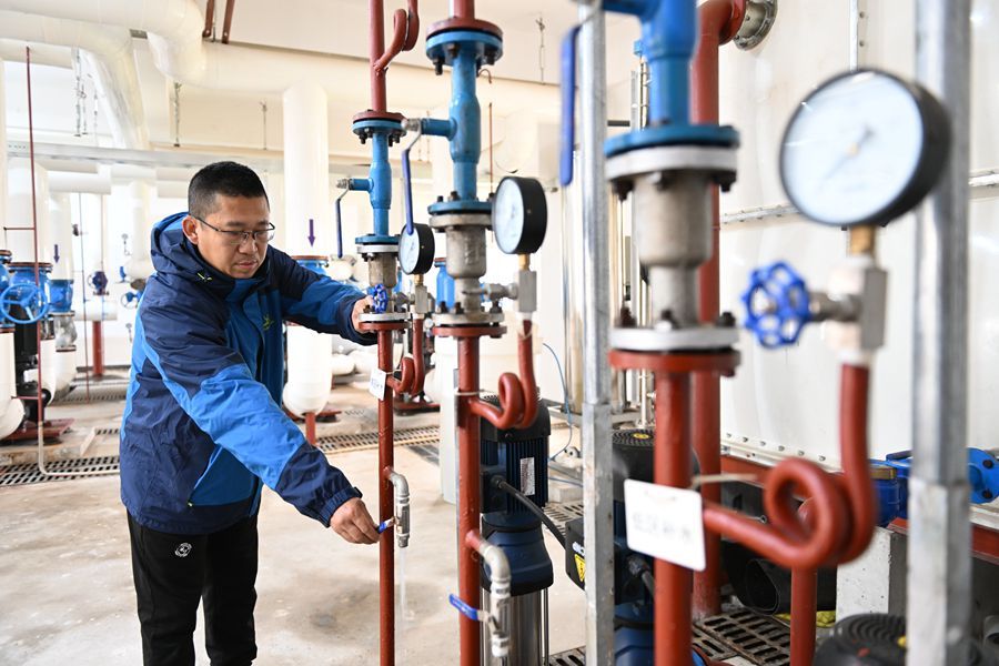 11月15日,唐山市熱力集團有限公司工作人員在唐山市路南區(qū)綠城南湖春曉五號熱力站內(nèi)檢查供暖設備。連日來,河北省唐山市路南區(qū)組織相關部門、企業(yè)對轄區(qū)內(nèi)供熱管網(wǎng)、供暖設施和居民家中的采暖設備等進行巡檢維護,做好供暖保障工作,確保群眾溫暖過冬。