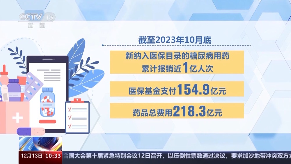 在過去的5年,通過國(guó)家談判進(jìn)入醫(yī)保目錄的糖尿病治療藥物,在百姓日常購藥時(shí)已經(jīng)可以報(bào)銷。截至2023年10月底,這些新納入醫(yī)保目錄的糖尿病用藥累計(jì)報(bào)銷近1億人次,醫(yī)保基金支付154.9億元,藥品總費(fèi)用218.3億元。通過談判降價(jià)和醫(yī)保報(bào)銷,累計(jì)為患者減負(fù)479.5億元,平均每人次減負(fù)511.7元。