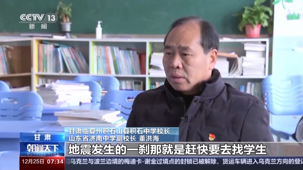 甘肅臨夏州積石山縣積石中學(xué)校長、山東省濟(jì)南中學(xué)副校長 董洪海:地震當(dāng)天的凌晨,就已經(jīng)有臨夏市的百姓到學(xué)校里邊送食物,有大量的救援的車輛、人員進(jìn)入,也感到了整個社會支撐的力量。我不是一個人在戰(zhàn)斗,是一個很大的團(tuán)隊。