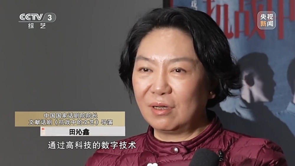 中國國家話劇院院長 文獻(xiàn)話劇《抗戰(zhàn)中的文藝》導(dǎo)演 田沁鑫:在舞臺(tái)方面,也是打破了時(shí)空的界限,通過高科技的數(shù)字技術(shù),影視化的多機(jī)位多角度的拍攝手法,將裝置影像藝術(shù)和戲劇表演藝術(shù)相融合,以戲劇電影的方式講好中國故事。