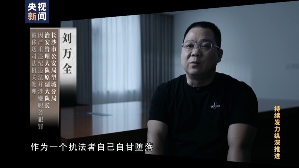 長沙市公安局望城分局治安管理大隊(duì)原副大隊(duì)長 劉萬全:總共送了兩萬三還是兩萬五千塊錢。作為一個(gè)執(zhí)法者,自己自甘墮落,為了這些蠅頭小利,貪小利貪小便宜,沒有守住紀(jì)律的、法律的底線。
