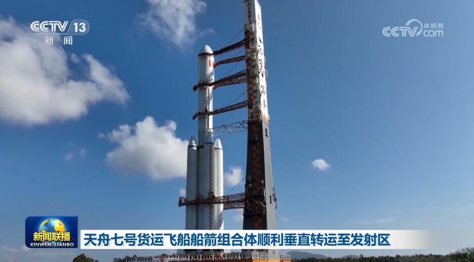 天舟七號貨運(yùn)飛船船箭組合體順利垂直轉(zhuǎn)運(yùn)至發(fā)射區(qū)