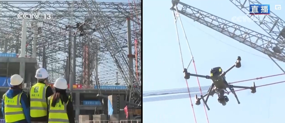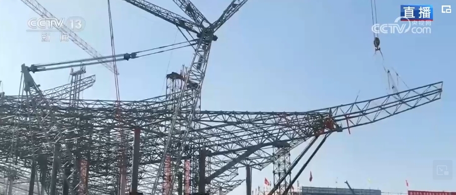 總臺記者 韓志濤:施工當中要在高空中定位,并且多臺液壓機同時提升,誤差要控制在3毫米以內(nèi),這樣的精度是如何把控的?屋蓋上空有無人機在飛行,它在完成攝影的同時,會同步按照規(guī)劃好的航測路線,直接構(gòu)建屋蓋網(wǎng)架的高精度三維模型,同時完成實體與數(shù)字模型的精準對接。這些鋼梁上都有一個應(yīng)變傳感器,它是一個診斷小能手,可以為屋蓋結(jié)構(gòu)提供全天候監(jiān)測診斷服務(wù),通過精準“把脈”保證屋蓋網(wǎng)架結(jié)構(gòu)從施工到運營的數(shù)據(jù)安全。施工方還創(chuàng)建了規(guī)劃設(shè)計統(tǒng)籌、目標工期管控、特殊工藝運用等“三大智囊平臺”,通過數(shù)字化、智能化全力推進機場建設(shè)。
