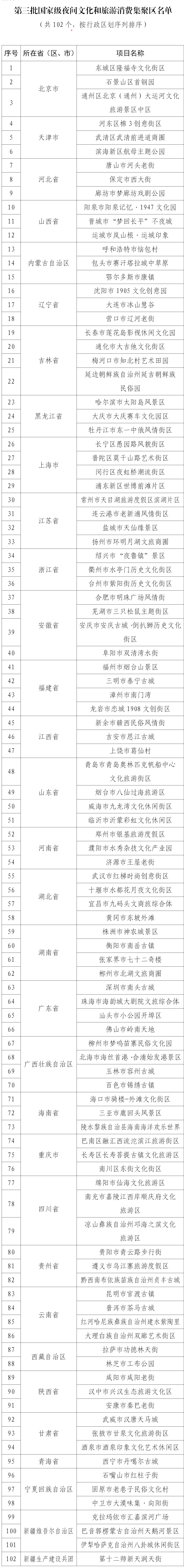 第三批國(guó)家級(jí)夜間文化和旅游消費(fèi)集聚區(qū)名單: