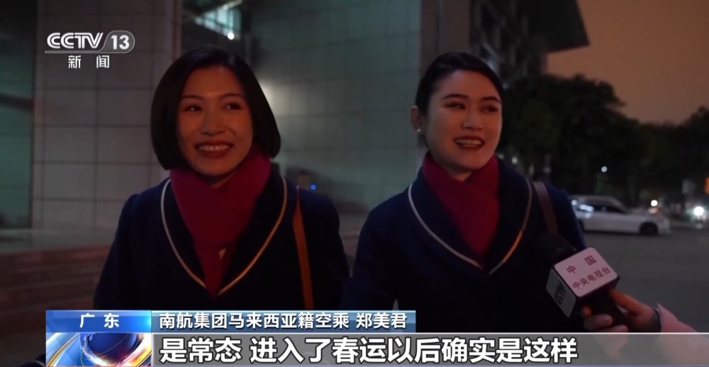 南航集團(tuán)馬來(lái)西亞籍空乘 鄭美君:是常態(tài),進(jìn)入了春運(yùn)以后確實(shí)是這樣,在旅客不知道的角度我們做了很多準(zhǔn)備。旅客上來(lái)的時(shí)候,其實(shí)我們已經(jīng)滿頭大汗的那種了。