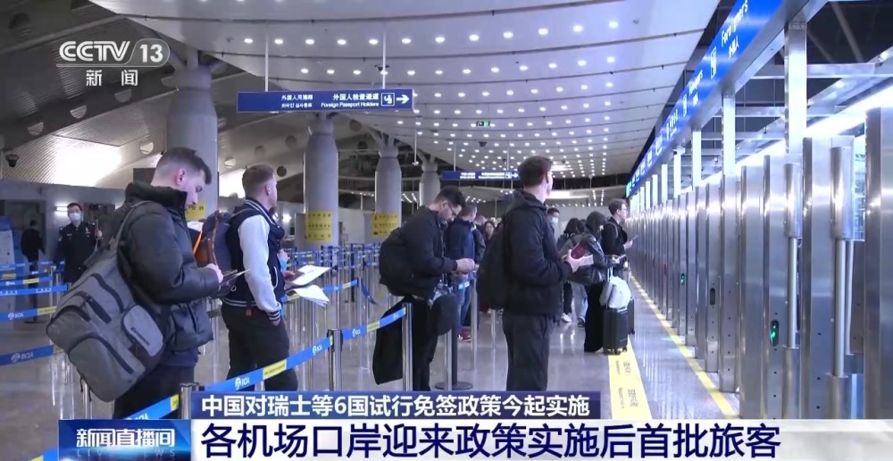 今起中國對瑞士等6國試行免簽 各機(jī)場口岸迎來政策實施后首批旅客