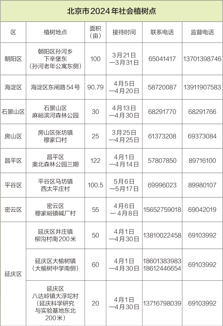 為更好地給首都市民履行植樹義務提供服務,讓更多的力量參與到北京建設花園城市的事業(yè)當中,2024年全市設立春季植樹盡責接待點10處,可供植樹面積653畝;設立社會撫育勞動接待點20處,可撫育面積3830畝;84個“互聯(lián)網(wǎng)+全民義務植樹”基地將提供多種盡責形式的全年化接待服務。首都市民可以通過“首都全民義務植樹”微信公眾號查詢感興趣的義務植樹盡責活動,進行預約、簽到,在線領取首都全民義務植樹盡責證書。