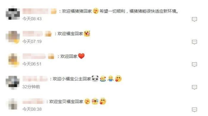 有網(wǎng)友寫道,祝愿“福寶”一切順利,“能很快適應(yīng)新環(huán)境”。還有網(wǎng)友表示,“福寶回國(guó)后一定也要福氣滿滿,永遠(yuǎn)幸福哦!”