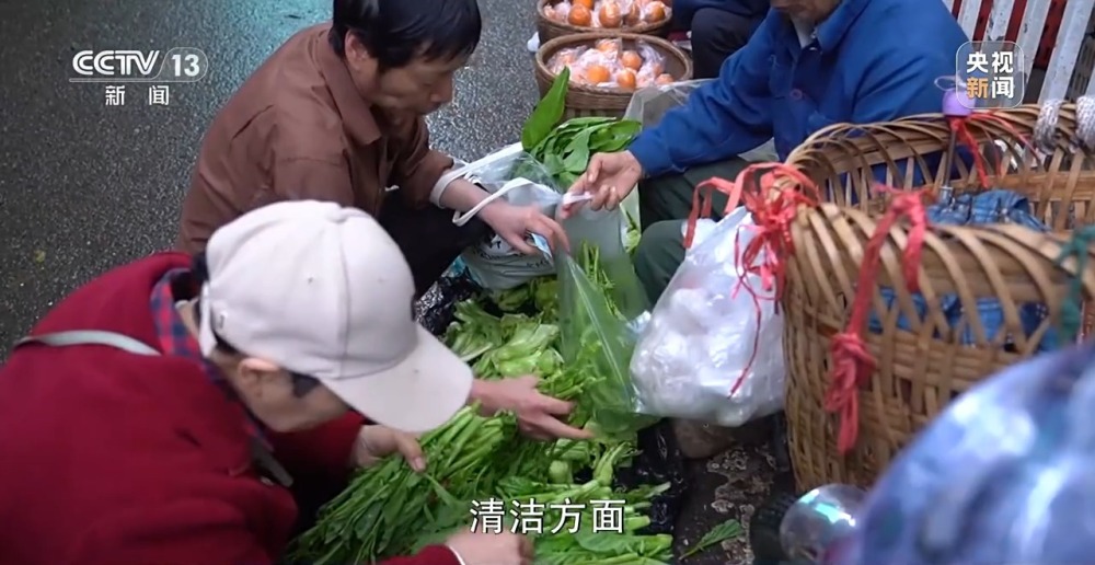 重慶人和加新農(nóng)貿(mào)市場(chǎng)經(jīng)理 張紅:背簍菜農(nóng)每天最起碼有500人以上。他們?cè)趯iT的地區(qū)擺攤,我們不會(huì)收他們的費(fèi)。清潔方面,他們走了之后,我們公司有清潔團(tuán)隊(duì)來(lái)做衛(wèi)生,對(duì)他們都是免費(fèi)的,給背簍菜農(nóng)留點(diǎn)空間,畢竟他們也很辛苦的。