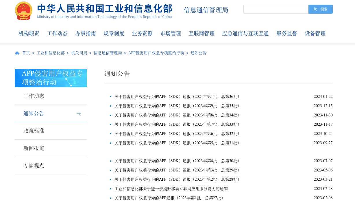 2023年2月,工業(yè)和信息化部印發(fā)的《關(guān)于進(jìn)一步提升移動互聯(lián)網(wǎng)應(yīng)用服務(wù)能力的通知》明確提出,加強(qiáng)SDK使用管理、規(guī)范SDK應(yīng)用服務(wù)以及落實SDK主體責(zé)任。上述通知稱,遵循最小必要原則,根據(jù)不同應(yīng)用場景或用途,明確SDK功能和對應(yīng)的個人信息收集范圍,并向APP開發(fā)運營者提供功能模塊及個人信息收集的配置選項,不得一攬子過度收集個人信息。