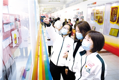 5月7日,中日友好醫(yī)院舉辦抗擊新冠肺炎疫情工作展開幕式。抗疫工作展分為《國有召、召必應(yīng)》《應(yīng)必戰(zhàn),戰(zhàn)必勝》《英雄譜》《守土有責》4個章節(jié),展現(xiàn)醫(yī)務(wù)人員全力救治患者的英雄風采。本報記者張丹攝