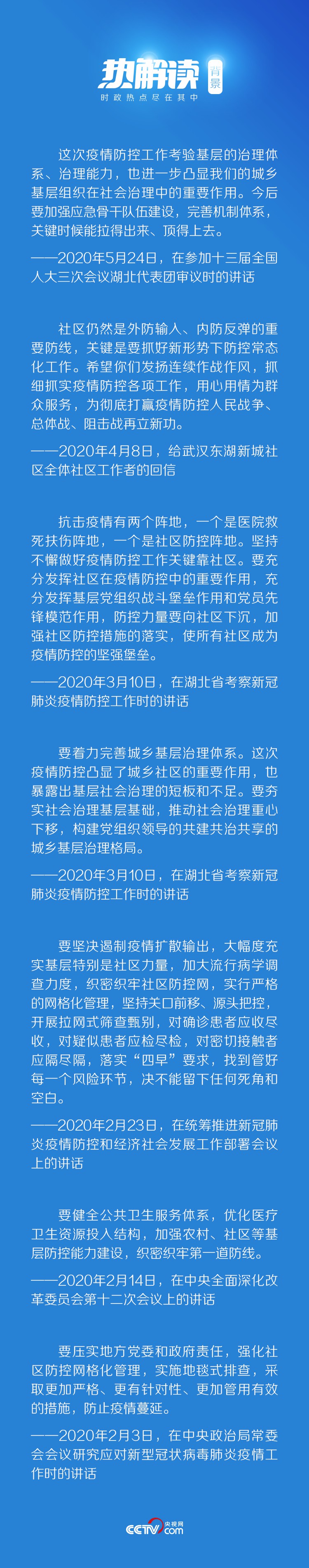 習(xí)近平在后來的講話中強(qiáng)調(diào),要“堅(jiān)持常態(tài)化精準(zhǔn)防控和局部應(yīng)急處置有機(jī)結(jié)合,加強(qiáng)社區(qū)精準(zhǔn)防控”,“健全疾控機(jī)構(gòu)與城鄉(xiāng)社區(qū)聯(lián)動(dòng)工作機(jī)制,加強(qiáng)鄉(xiāng)鎮(zhèn)衛(wèi)生院和社區(qū)衛(wèi)生服務(wù)中心疾病預(yù)防控制職責(zé),夯實(shí)聯(lián)防聯(lián)控的基層基礎(chǔ)”。