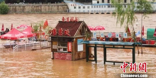 6月27日,黃河蘭州段水位大漲,蘭州城區(qū)近水廣場被淹?!$娦馈z