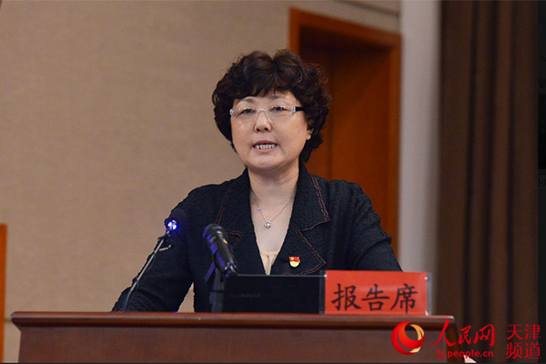 天津市委黨校副教育長(zhǎng)兼教務(wù)處處長(zhǎng)、教授臧學(xué)英作報(bào)告。北京市委講師團(tuán)供圖