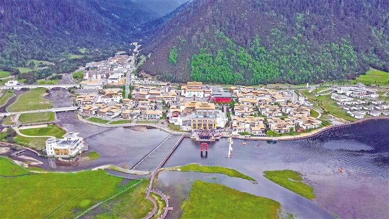 廣東省對(duì)口支援建設(shè)的巴宜區(qū)魯朗國(guó)際旅游小鎮(zhèn)鳥(niǎo)瞰圖(局部)。
