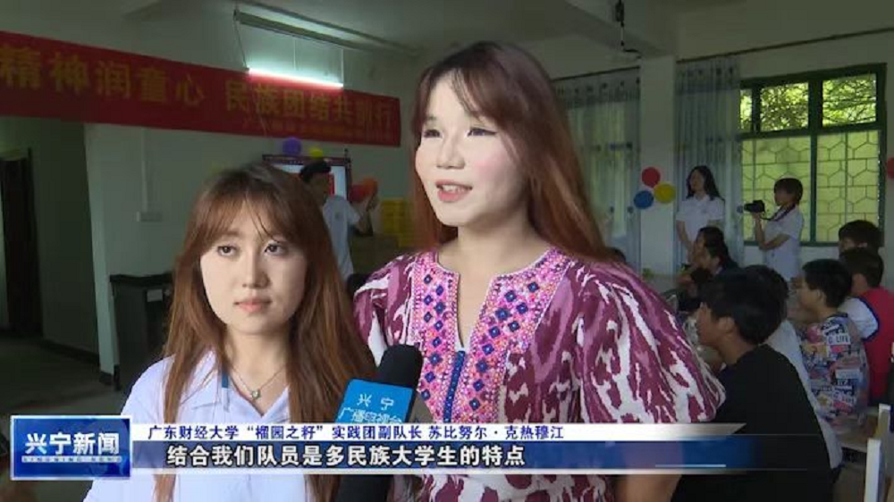 實踐團(tuán)隊員蘇比努爾 克熱穆江介紹到:在廣財大,校內(nèi)石榴樹生機(jī)勃勃,校園有“榴園”的雅稱。我們的隊員是來自廣財?shù)母髅褡宕髮W(xué)生,是“榴園”內(nèi)的“石榴籽”,因此老師為我們?nèi)∶傲駡@之籽”實踐團(tuán)。