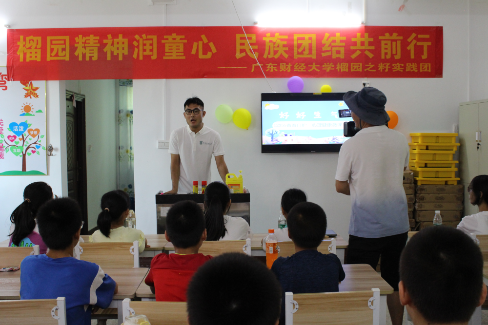 強(qiáng)國建設(shè)、民族復(fù)興的進(jìn)程,必然是各民族廣泛交往交流交融的過程,必然是各民族共同團(tuán)結(jié)奮斗、共同繁榮發(fā)展的過程。廣東財經(jīng)大學(xué)“榴園之籽”實踐團(tuán)由維吾爾族、藏族、漢族等各民族大學(xué)生組成,具有中華民族共同體的象征意義,團(tuán)隊在支教過程中為鄉(xiāng)村兒童展現(xiàn)各民族文化,使他們感受到各民族文化的魅力,豐富了世界觀。