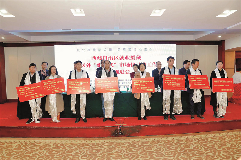 西藏就業(yè)援藏暨區(qū)外“組團(tuán)式”市場(chǎng)化就業(yè)工作推進(jìn)會(huì)現(xiàn)場(chǎng)。