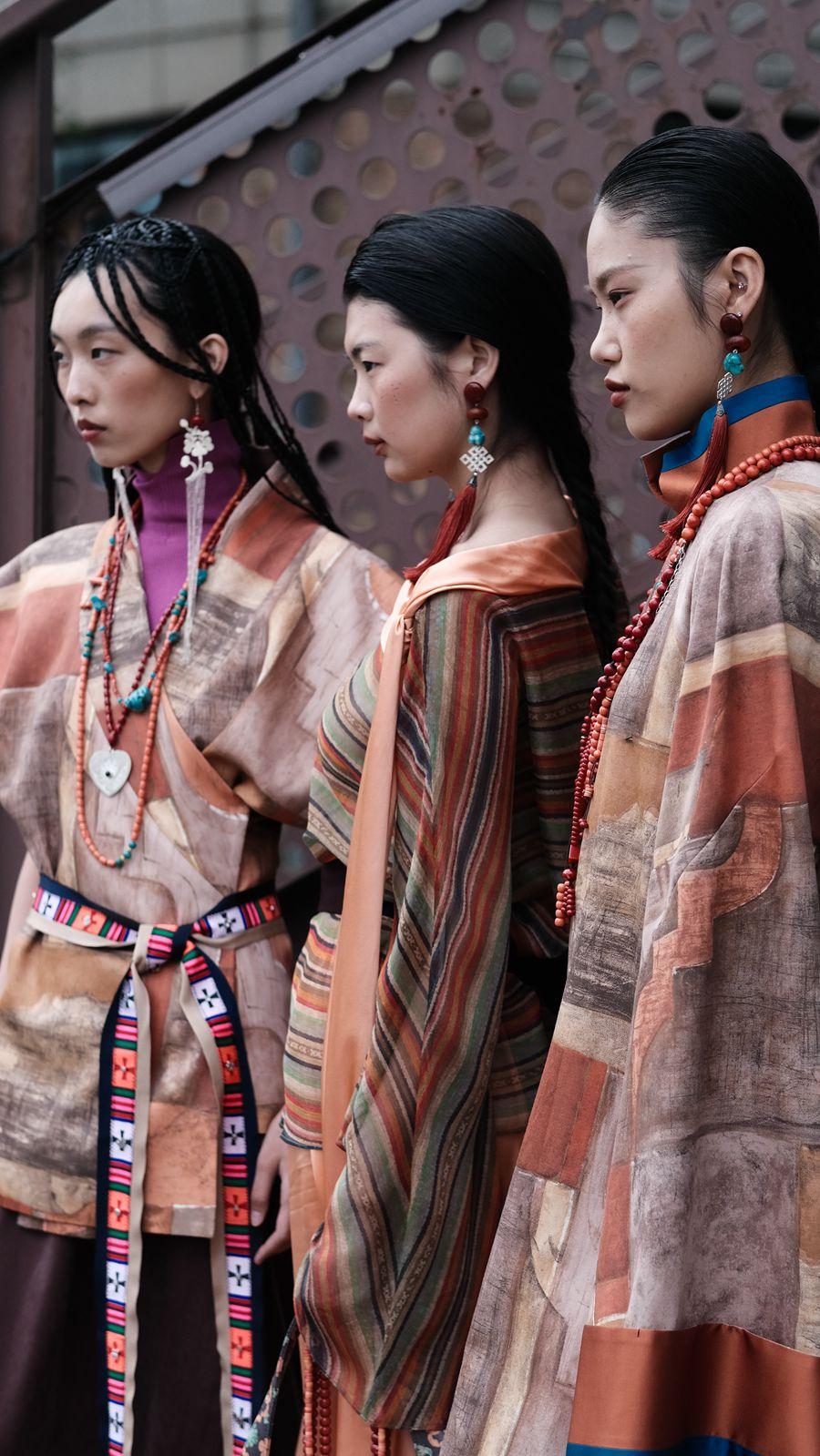以馬乖在中國國際時裝周的發(fā)布產(chǎn)品為例,連續(xù)多季深根民族文化的傳承與創(chuàng)新,在跟隨株洲援藏工作隊進入扎囊縣后,馬乖開始深入發(fā)掘藏族服飾與時尚消費的融合創(chuàng)新,跟其他設(shè)計師借鑒少數(shù)民族元素做新產(chǎn)品的初衷不同,素白所呈現(xiàn)的新款背后是整個團隊研發(fā)的藏族非遺產(chǎn)品的動態(tài)活化過程,氆氌之鄉(xiāng)的“經(jīng)濟產(chǎn)品”是馬乖展開文化元素呈現(xiàn)后的落點,共建面料研發(fā)中心,將手工藝面料再造作為時尚服飾的亮點,研發(fā)新產(chǎn)品,提質(zhì)文化成果的經(jīng)濟轉(zhuǎn)化。觀察素白發(fā)布的往季產(chǎn)品,不難發(fā)現(xiàn),精粹歷史文化遺產(chǎn)、復興民族手工藝、打造時尚融合新品是品牌發(fā)展常態(tài),從大力發(fā)展植物染到玫瑰纖維的研發(fā)和使用,馬乖一直以設(shè)計之力、品牌影響在為消費者尋找更適合中國人自己的時尚發(fā)展模型。
