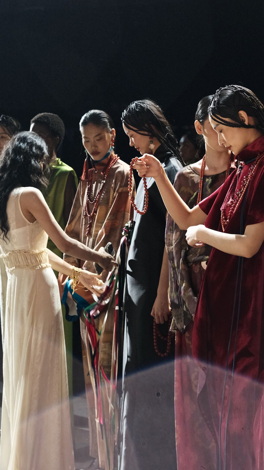 素白在中國國際時裝周發(fā)布2025春夏新品的當天,是品牌創(chuàng)始人馬乖的生日。這場秀像是設(shè)計師前半途的答卷,在品牌的重要節(jié)點打下了扎實的“結(jié)”,創(chuàng)立于2020年,第一個亮相時裝周的湖南原創(chuàng)品牌,創(chuàng)立之初,品牌的影響力完全來自于互聯(lián)網(wǎng),在湖南株洲的服飾熱土上,有得天獨厚的市場集群優(yōu)勢,在傳統(tǒng)服飾資源的滋養(yǎng)下,“爆款”道路輕車熟路,但是馬乖沒有急于“收割”,而是耐心走出了另一條路:推動民族文化基因的時尚化再生,讓原創(chuàng)品牌在中國式現(xiàn)代化進程中被賦予新的內(nèi)容和發(fā)展路徑。