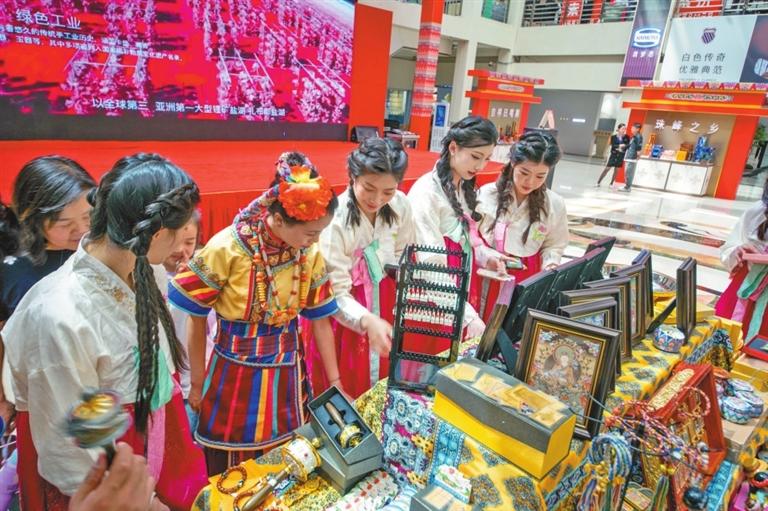 在吉林舉辦的“藏品入吉”展銷(xiāo)會(huì)上,游客在選購(gòu)日喀則特產(chǎn)。