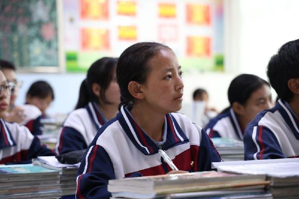 果洛西寧民族中學(xué)學(xué)生尼東拉毛在上課(圖片來源:新華社)