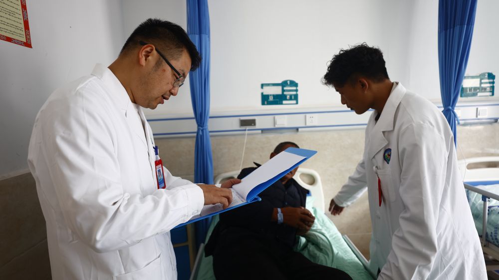 向桂林是一名援藏醫(yī)生,2023年3月,他從重慶市萬(wàn)州區(qū)來(lái)到西藏自治區(qū)昌都市察雅縣開(kāi)展醫(yī)療援藏工作。在察雅的一年半里,向桂林和隊(duì)員們參加了一百多次義診和下鄉(xiāng)指導(dǎo),累計(jì)接診門診患者1000余人次、救治住院患者400余人次,開(kāi)展手術(shù)35臺(tái),申報(bào)新技術(shù)10項(xiàng)。今年國(guó)慶,向桂林選擇繼續(xù)留守工作崗位?!爸荒茉谝曨l通話里和家人團(tuán)聚了。但這是我們的責(zé)任更是一種榮譽(yù)?!毕蚬鹆终f(shuō)。