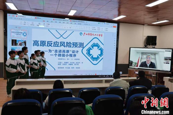 圖為四川大學(xué)華西醫(yī)院院長、高原醫(yī)學(xué)中心主任羅鳳鳴教授通過視頻連線點(diǎn)評(píng)、指導(dǎo)高中生的微信小程序作品。廣州97中 供圖