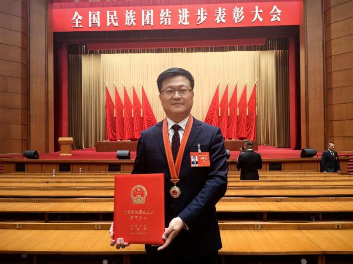 圖為孫樹學(xué)出席全國民族團結(jié)進(jìn)步表彰大會。受訪者供圖