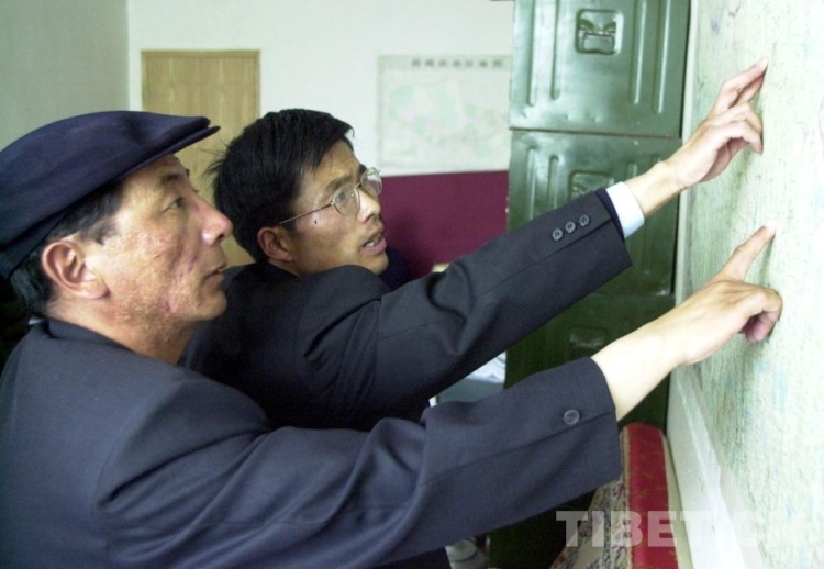 這是時(shí)任雙湖特別區(qū)(現(xiàn)雙湖縣)區(qū)委書記的范科創(chuàng)(右)與副區(qū)長珠巨(左)在研究當(dāng)?shù)氐慕?jīng)濟(jì)發(fā)展規(guī)劃。為了無人區(qū)開發(fā)事業(yè),范科創(chuàng)在這里默默奉獻(xiàn)了15個(gè)春秋。1986年,他被西藏自治區(qū)黨委授予“優(yōu)秀黨務(wù)工作者”榮譽(yù)稱號(唐召明2001年攝)