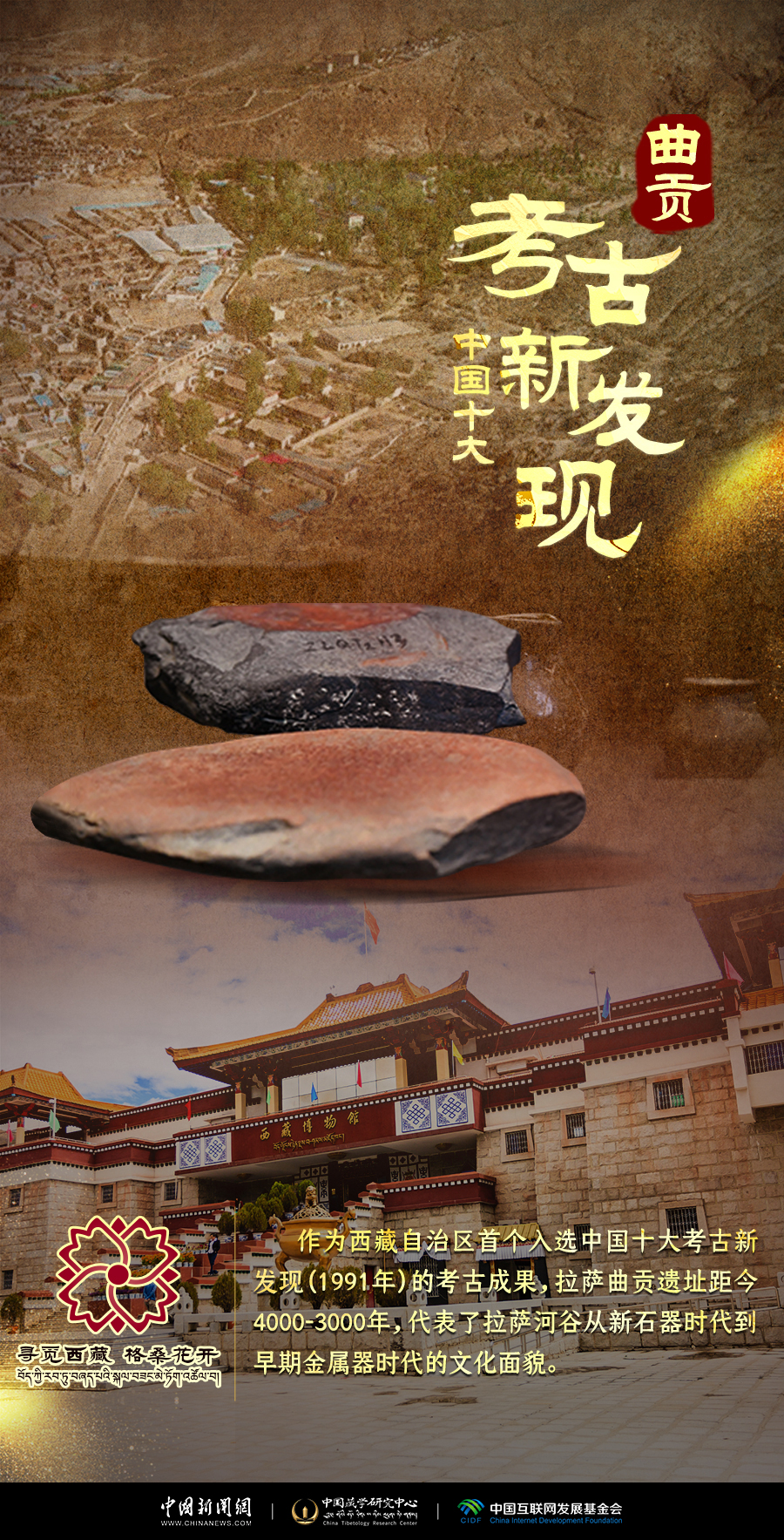 卡若遺址距今約5000年左右,第一次將西藏高原史前人類生存活動的科學證據(jù)揭露于世。2021年10月,西藏昌都卡若遺址入選中國“百年百大考古發(fā)現(xiàn)”。曲貢遺址位于拉薩市北郊,距市區(qū)約五公里,是迄今在西藏發(fā)現(xiàn)的海拔最高、面積最大,文化層堆積較厚,文化內(nèi)涵極其豐富的遺址之一,被譽為拉薩的“半坡”。它們勾勒出青藏高原的文明年輪。