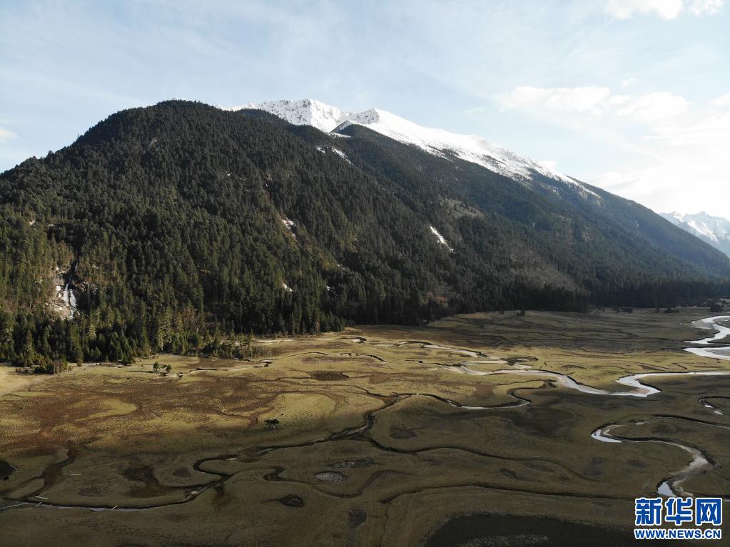 由于海拔相對較低并處于青藏高原的水汽通道處,林芝市的森林資源豐富,林地面積占總面積一半以上。因植被覆蓋率高,林芝多地被稱作青藏高原的“天然氧吧”。新措位于林芝市巴松措國家森林公園東北部約30公里處,行走其間,仿佛置身“世外桃源”。