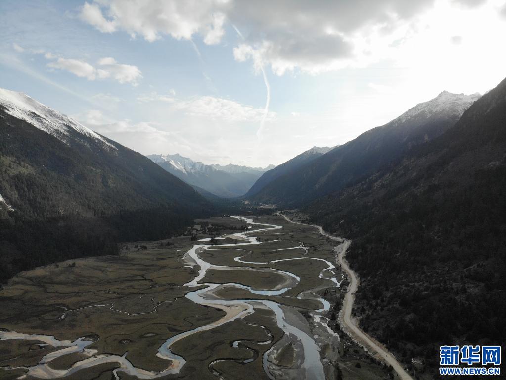 這是5月1日拍攝的雪山間的新措和森林、牧場(無人機照片)。新華社記者 孫瑞博 攝