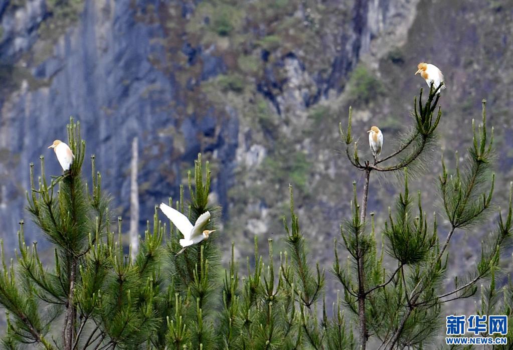 牛背鷺在易貢國(guó)家地質(zhì)公園棲息(5月22日攝)。新華社記者 張汝鋒 攝