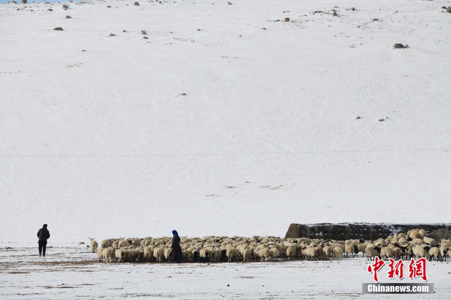 1月26日,牧民在納木錯(cuò)湖邊放牧。雪后的西藏納木錯(cuò)銀裝素裹,美景如畫。 中新社記者 貢嘎來(lái)松 攝