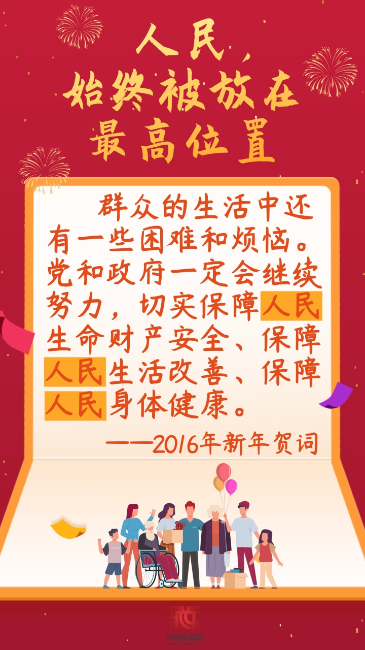 編者按:自2014年新年起,習(xí)近平主席已連續(xù)九年發(fā)表新年賀詞。人民群眾的生活冷暖始終是習(xí)近平主席的牽掛,歷次新年賀詞中都有明顯體現(xiàn),既展示了大國(guó)領(lǐng)袖的博大胸襟,也凸顯出人民領(lǐng)袖的為民情懷。(中國(guó)西藏網(wǎng) 編輯/孫健 制作/許娜)