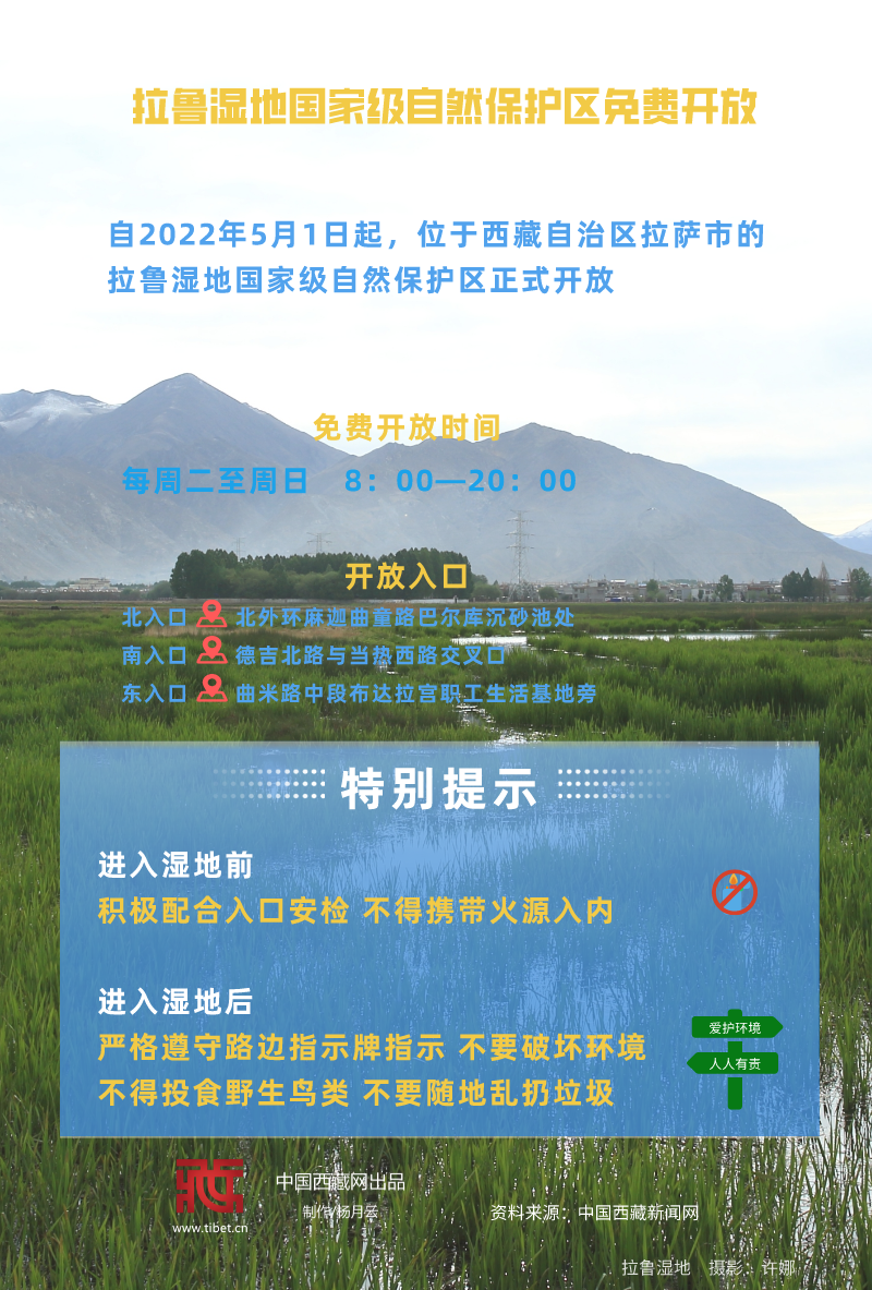 自2022年5月1日起,位于西藏自治區(qū)拉薩市的拉魯濕地國家級自然保護區(qū)正式開放。[詳細(xì)] -