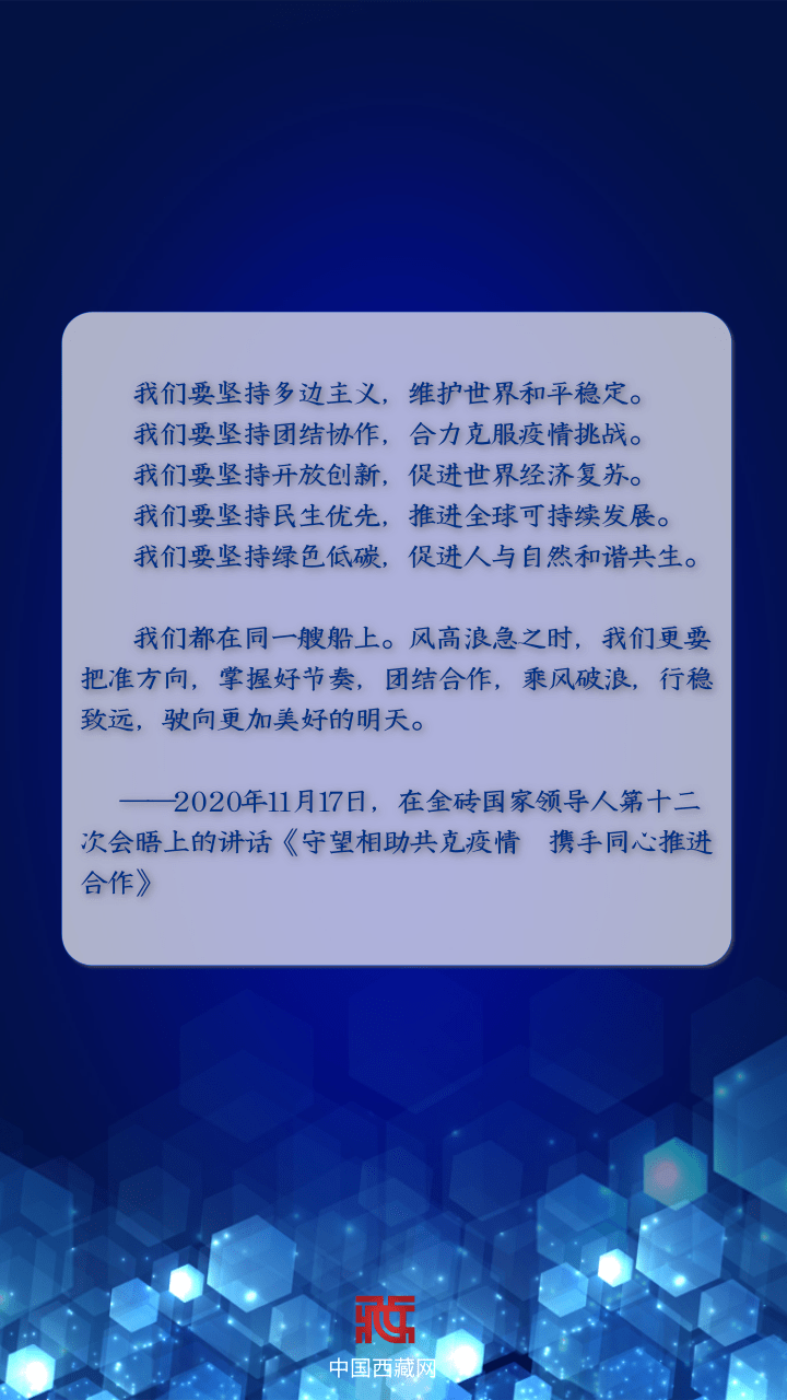 讓我們攜起手來,堅持和平、發(fā)展、合作、共贏,共同解決當前世界經(jīng)濟以及國際貿(mào)易和投資面臨的問題,一起走向更加美好的未來! [詳細]