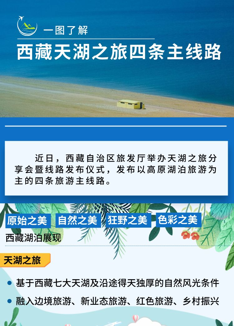 近日,西藏自治區(qū)旅發(fā)廳舉辦天湖之旅分享會暨線路發(fā)布儀式,發(fā)布以高原湖泊旅游為主的四條旅游主線路。 [詳細] -