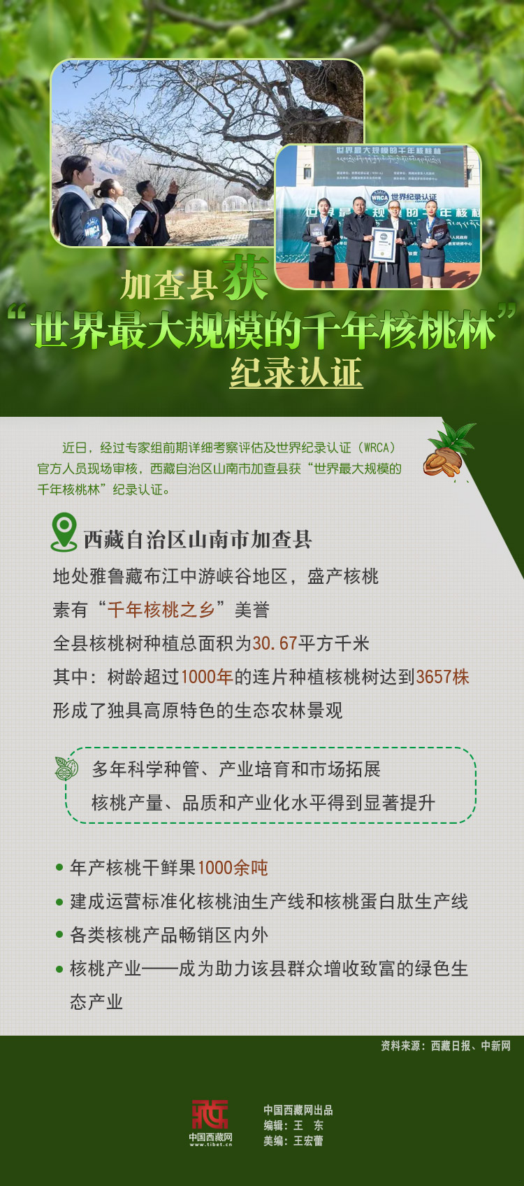 海報|加查縣獲“世界最大規(guī)模的千年核桃林”紀錄認證