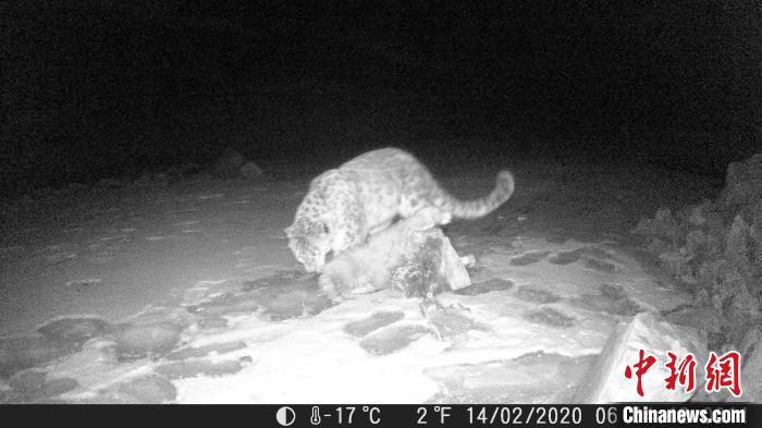 視頻截圖為紅外相機在青海省海北藏族自治州海晏縣夏格爾山拍攝到的雪豹清晰影像 圖片來源:中新網