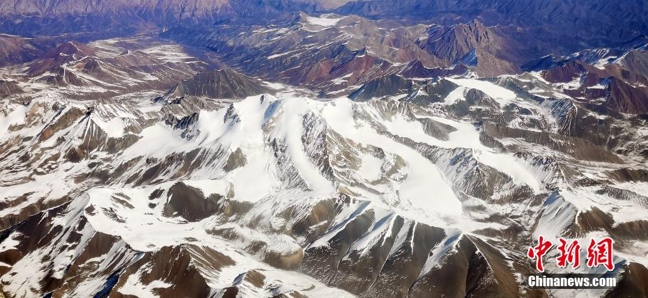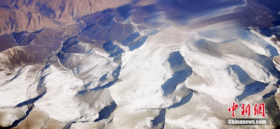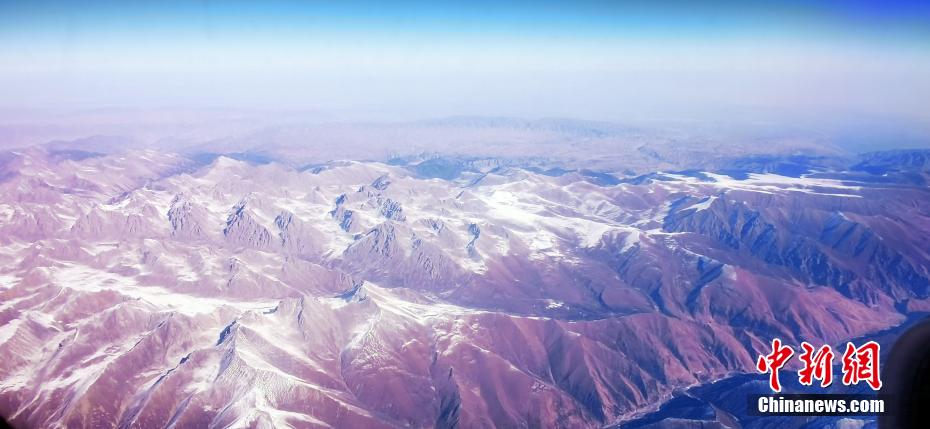 11月9日,記者從萬米高空俯瞰祁連山,雪域之巔造型各異,氣勢(shì)恢宏的雪山棱角分明,在皚皚白雪的覆蓋下,山巔似撒了一把把“椒鹽”,陽剛與陰柔之美相得益彰,高原湖泊如藍(lán)寶石般鑲嵌在祁連山脈,更有藍(lán)天、白雪、黃沙和諧同框的奇觀,宛如張張“水墨丹青”的油彩畫,看“醉”空中旅人。 魏建軍 攝